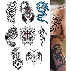 tuzuru Tattoo Stickers, Waterproof, Scorpion and Tribal Design, 5.9 x 8.3 inches (15 x 21 cm), Set of 8, Bonus Included
